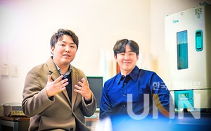 사진은 왼쪽부터 윤종현 학생, 김대원 교수 전자공학과 김대원 교수·윤종현 학생, 사물인터넷 해킹을 방지하는 소자 개발 정전기를 이용해 사용자 정보 저장, 저장 공간이 물리적으로 분리돼 정보 유출 방지 "줄어든 노이즈, 높아진 정확도로 개선된 결과물 선보일 것"일반대학원 전자정보융합공학과 윤종현 학생이 사물인터넷 플랫폼에서 무선 네트워크를 활용한 해킹을 원천적으로 차단하는 기술을 개발했다. 지도교수인 전자공학과 김대원 교수가 교신저자로 참여했고, 연구 결과는 재료 분야 국제적인 학술지인 에 게재됐다. 윤종현 학생은 “논문을 지도해준 김대원 교수님과 도움을 준 동료에게 감사하다. 또한, 학부 과정 동안 배운 전자공학으로 기술을 개발했다는 사실에 큰 성취감을 느낀다”는 소감을 전했다. 5G 시대가 도래한 이후 사물인터넷이 보편화돼 누구나 쉽게 접할 수 있다. 인공지능 스피커, 스마트 홈과 같은 사물인터넷은 우리 일상에 편리한 기능을 제공하지만, 사물인터넷 해킹으로 인한 피해도 급속도로 커지고 있다. 지난 2015년에는 사물인터넷 해킹으로 약 14조 원의 재산 피해가 발생했고, 다가올 2030년에는 사물인터넷 해킹으로 인한 피해가 27조 원에 달할 것으로 예측된다.기존 사물인터넷은 무선 네트워크를 연결해 사용자 정보를 저장하고 불러온다. 이 방식은 무선 네트워크가 해킹되면 사용자의 개인정보가 유출될 위험이 있다. 김대원 교수 연구팀은 해킹 위험이 있는 무선 네트워크 대신, 물리적으로 분리된 공간에 정보를 저장하는 원판 모양의 마찰전기 나노발전기(TENG, Triboelectric Nanogenerator) 기반 비휘발성 메모리(NVM, Nonvolatile Memory)라는 소자를 개발해 사물인터넷 기기 보안성을 높였다.정전기 기반 비휘발성 메모리로 사물인터넷 해킹 원천 방지비휘발성 메모리는 전자기기의 전원을 꺼도 메모리에 저장된 데이터가 사라지지 않아, 사물인터넷 기기에 사용자 정보를 저장하기 적합한 소재다. 하지만 비휘발성 메모리는 저장된 데이터를 읽을 때마다 전력을 소비하는 문제가 있다. 연구팀은 비휘발성 메모리와 마찰전기 나노 발전기를 접목해 문제를 해결했다. 마찰전기 나노 발전기는 접촉면 사이에 마찰이 발생하면 정전기를 일으켜 전기를 생산한다. 이 전기로 메모리에 저장된 정보를 읽을 수 있고, 안정적인 전력 공급이 가능하다.연구팀이 개발한 저전력 비휘발성 메모리에 사물인터넷 사용자 식별 정보가 저장된다. 저장된 정보는 91.3%의 높은 정확성을 기록했다. 윤종현 학생은 “이번 연구는 정보를 저장하는 공간이 물리적으로 분리돼 개발한 소자에 저장된 정보 유출이 불가능해 의의가 크다”고 설명했다. 이어 “기술을 상용화하기 위해 크기를 줄이고, 정밀도를 높여야 한다. 앞으로 후속 연구를 계속 진행해 성능이 더 향상된 소자를 개발하겠다”라고 말했다. 김 교수는 “정전기를 이용한 전기 신호는 노이즈가 생겨 정보를 읽는데 오류가 발생한다”며 “오류를 극복하기 위해 생성된 전기 신호를 디지털화했는데 노이즈가 줄고 저장된 정보를 읽는 과정에서 정확도가 높아져 향후 더욱 개선된 결과물을 선보일 수 있을 것”이라고 평가했다.스스로 생각하는 능력이 미래를 이끌 엔지니어의 덕목연구 아이디어는 일상에서 쉽게 접할 수 있는 무선전자태그(RFID, Radio Frequency Identification)에서 얻었다. RFID는 전원을 필요로 하는 능동형과 전자기장에 의해 작동하는 수동형으로 나뉜다. 김 교수는 수동형 RFID의 작동원리에서 영감을 받았다. 그는 “정전기를 기반으로 한 에너지 하베스팅 기술을 이용해 구현하면 사물인터넷 해킹을 막을 수 있다고 판단했다.”고 말했다. 에너지 하베스팅 기술은 태양광, 진동, 열, 풍력 등 자연적으로 발생하는 에너지를 전기에너지로 전환하고 수확하는 기술이다.김 교수는 흥미로운 아이디어를 떠올리면 학생과 공유해 연구 주제를 정한다. 이 과정에서 학생은 아이디어를 구체화하고 스스로 더 깊게 탐구한다. 김 교수는 “한국 학생은 듣고 읽는 능력은 매우 뛰어나다. 하지만 이는 수동적인 교육을 받은 증거다. 자기 생각을 다른 이에게 효과적으로 전달하고 설득하기 위해서는 말하고 쓰는 능력을 기르고, 능동적인 사고를 할 수 있어야 한다”고 말했다. 김 교수의 연구 철학은 연구실 모토에 반영됐다. 김 교수는 “‘능동적이며 주인의식을 가진 프로가 되자’라는 모토에 맞춰 학생을 지도하고 있다. 미래 기술과 사회를 이끄는 엔지니어를 양성하는 것이 목표”고 말했다.“대학원은 문제 해결 능력과 전문성을 기를 기회”윤종현 학생은 “내가 디자인한 소자를 전 세계가 활용하는 것이 꿈이다. 이 꿈을 이루기 위해 대학원에 진학했다”고 말했다. 윤종현 학생은 “학부생 때는 정해진 범위에서 지식을 축적했다면, 대학원은 정해진 범위 없이 스스로 공부하며, 당착한 문제를 해결해야 한다. 이 과정에서 능동성과 전문성을 기를 수 있다”며 학부와 대학원의 차이점을 설명했다. 윤종현 학생은 대학원에서 정전기 기반 에너지 하베스팅 기술을 연구하며 폭넓은 경험을 쌓고 있다. 향후 차세대 나노 소자를 결합한 융